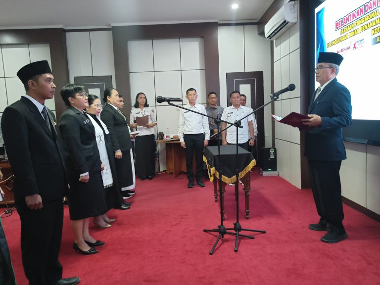 PENAKALTENG, Palangka Raya – Wali Kota Palangka Raya melalui Pj Sekda, Arbert Tombak melantik delapan Pejabat Fungsional di lingkungan Dinas Penanaman Modal dan Pelayanan Terpadu Satu Pintu (DPMPTSP). Kegiatan ini berlangsung di Ruang Peteng Karuhei I Kantor Wali Kota Palangka Raya, Rabu (28/5/2025).
